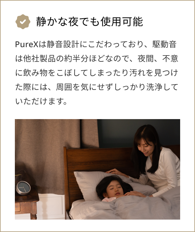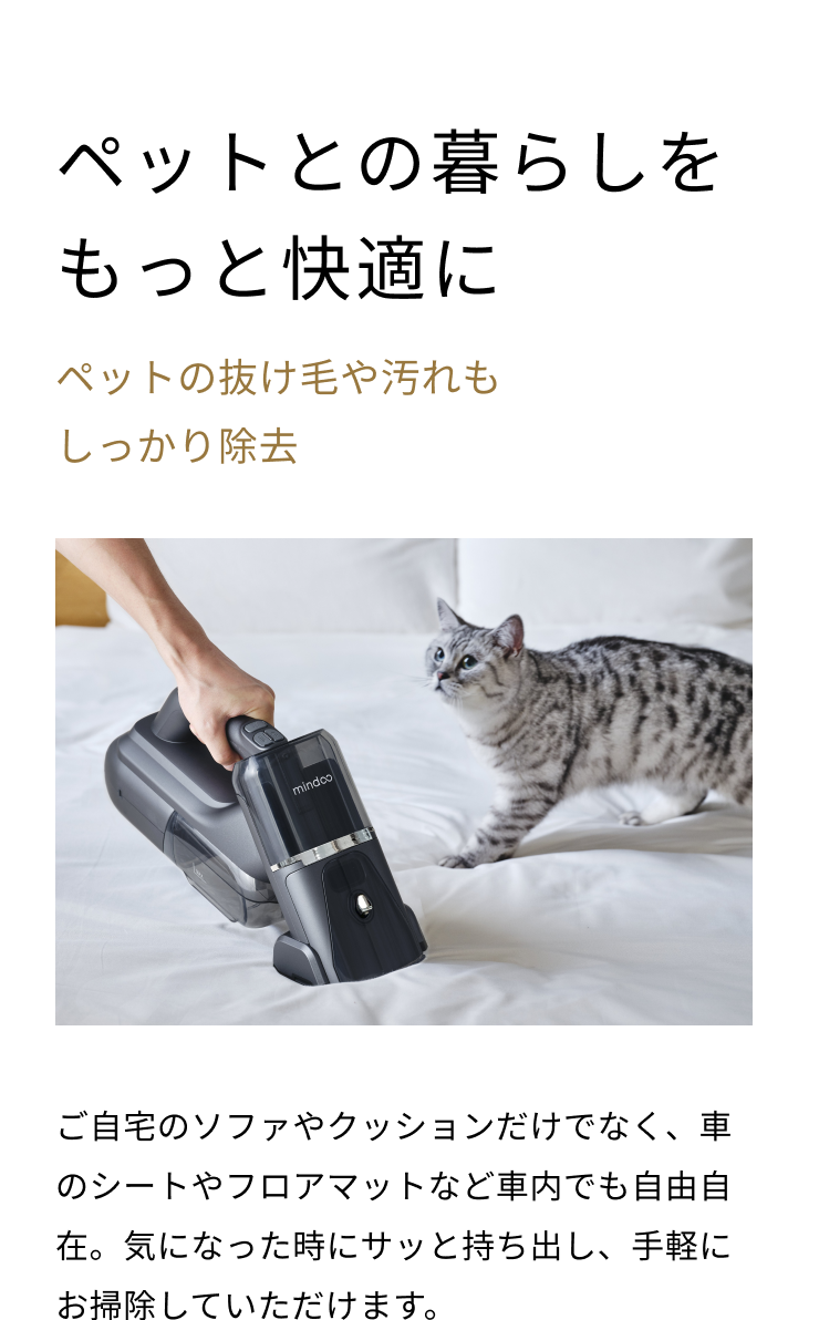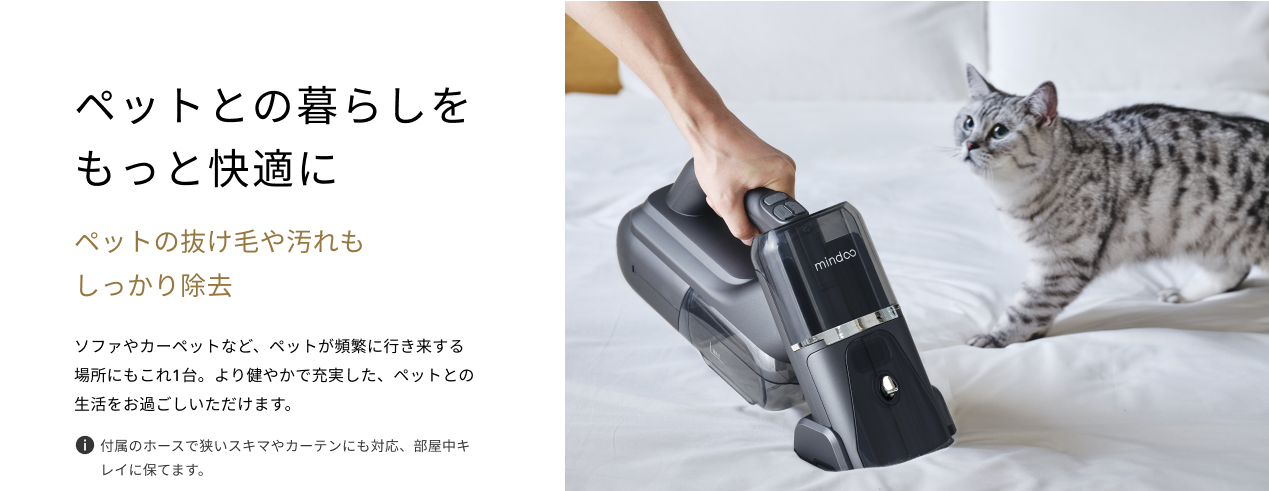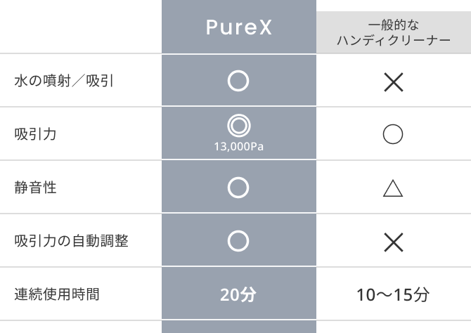 最大13,000PAという業界TOPクラスの吸引力で頑固な汚れやペットの毛、微細なダニまで確実に吸い取りあらゆる汚れを徹底的にキャッチします。