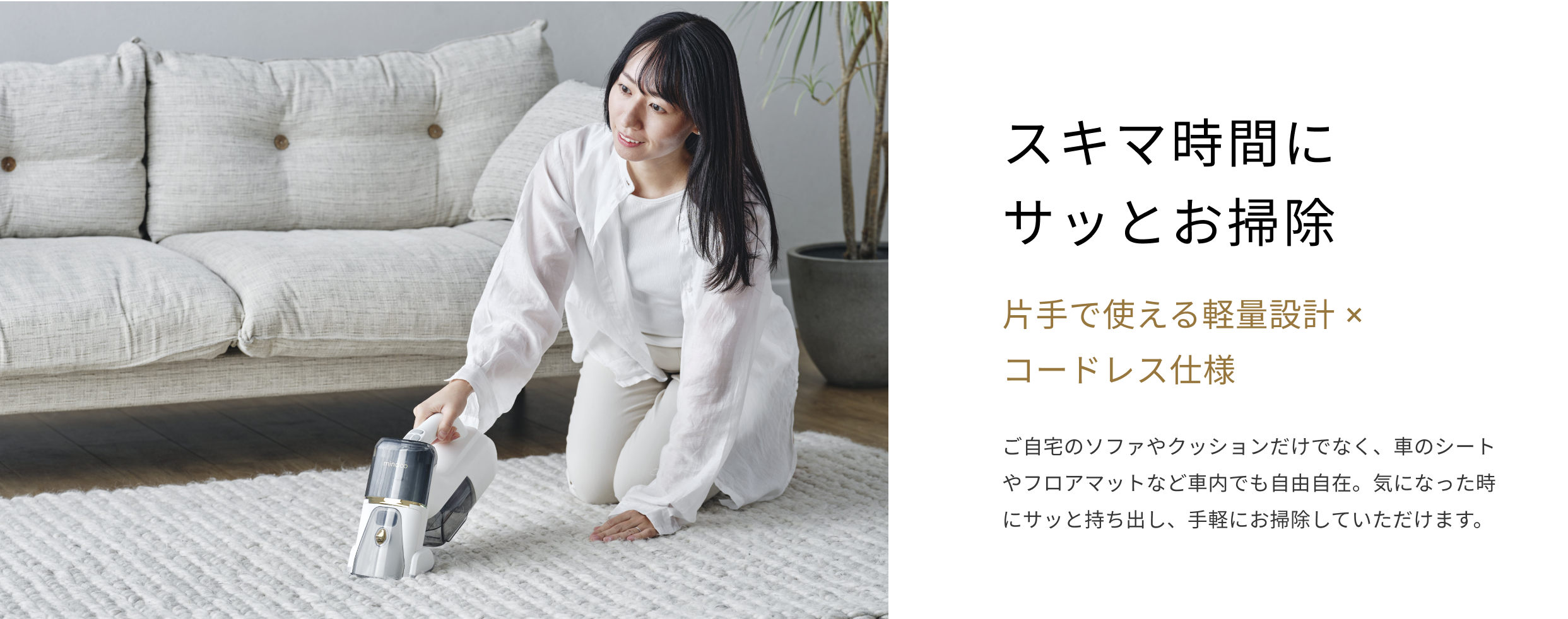 カーペットや絨毯、ソファ、マットレス、車の座席などの布製品にお使いいただけます。